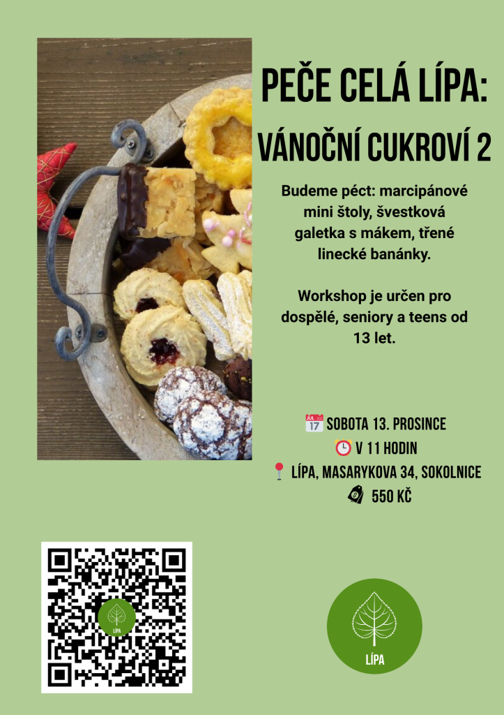 LÍPA komunitní centrum zve srdečně všechny zájemce na workshop Peče celá LÍPA: Vánoční cukroví 2. Více informací a registraci najdete na www.lipa-kc.cz