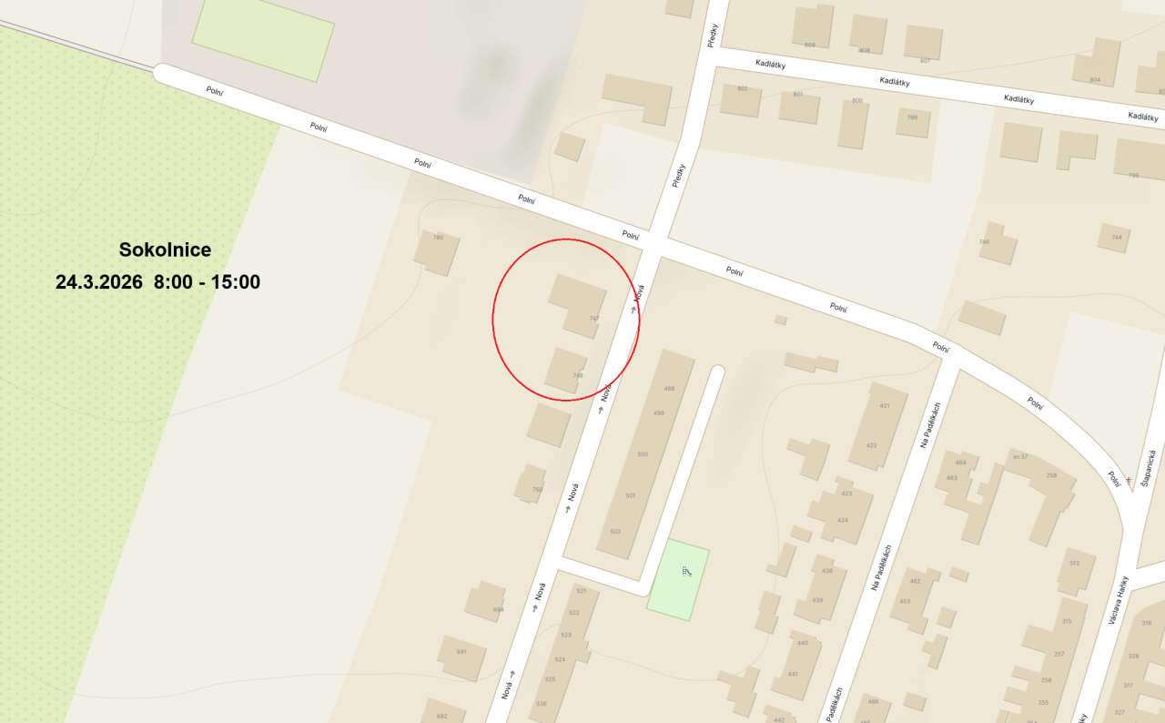 informujeme Vás, že z důvodu plánovaných prací na zařízení distribuční soustavy - rekonstrukcí, oprav, údržbových a revizních prací - bude přerušena dodávka elektrické energie dne 24. 03. 2026, od 08.00 do 15.00 hodin v části obce Sokolnice. Viz příloha.
